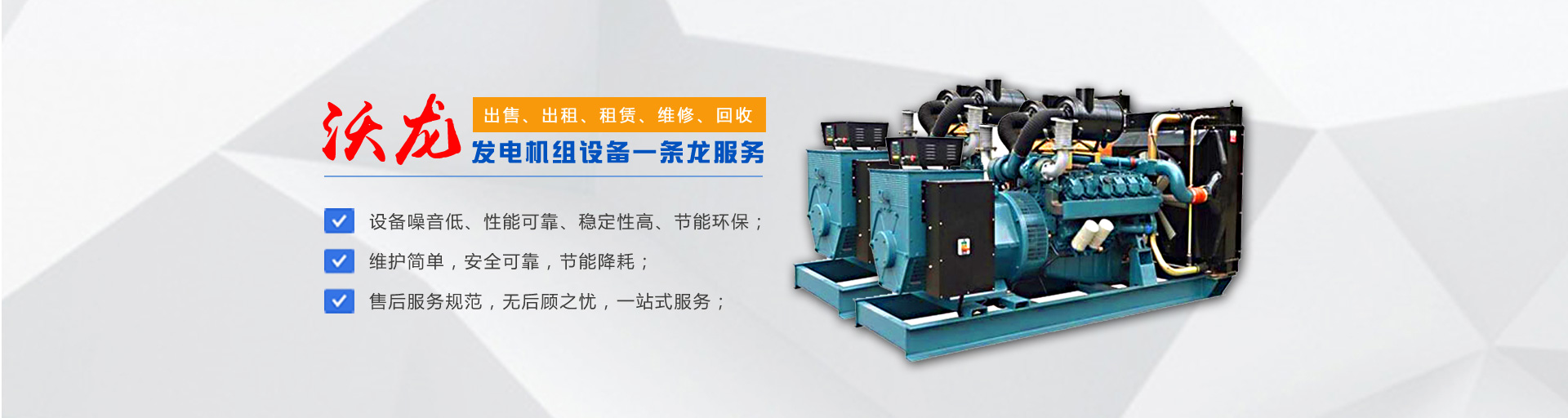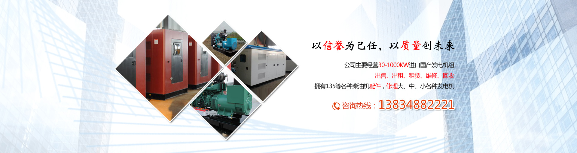 公司主要經(jīng)營30-1000KW進口國產(chǎn)發(fā)電機組的出售、出租、租賃、維修、回收,擁有135等各種柴油機配件,修理大、中、小各種發(fā)電機。能隨時為廣大客戶提供各種進口及國產(chǎn)品牌發(fā)電機組。配備專業(yè)司機和維修維護人員,專業(yè)的服務(wù)、先進的設(shè)備,現(xiàn)場使用零故障。本公司發(fā)電機組具備以下特點:噪音低、性能可靠、穩(wěn)定性高、節(jié)能環(huán)保。我們可以滿足用戶長短期用電;面向建筑工地、公路建設(shè)、地鐵施工、野外作業(yè)、商場備用、醫(yī)院應(yīng)急、影視媒體、單位供暖等多家企事業(yè)單位提供租賃業(yè)務(wù)。